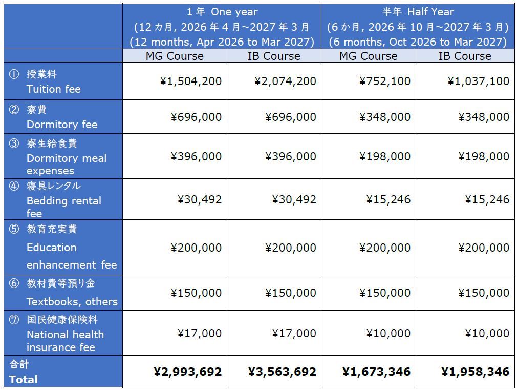 課程配置: 留學課程分為MG課程和IB課程。