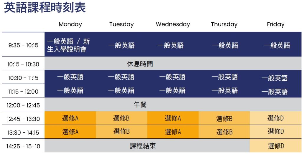 👩🏫 選修課包含:會話練習、文化交流、實用英語等