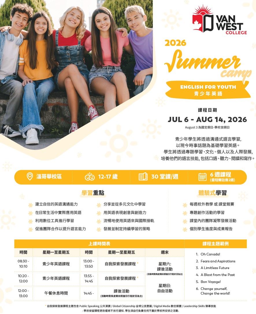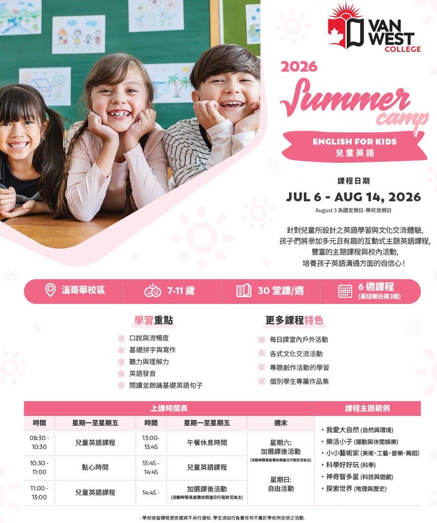 【2026】加拿大溫哥華VanWest 兒童/青少年 夏令營