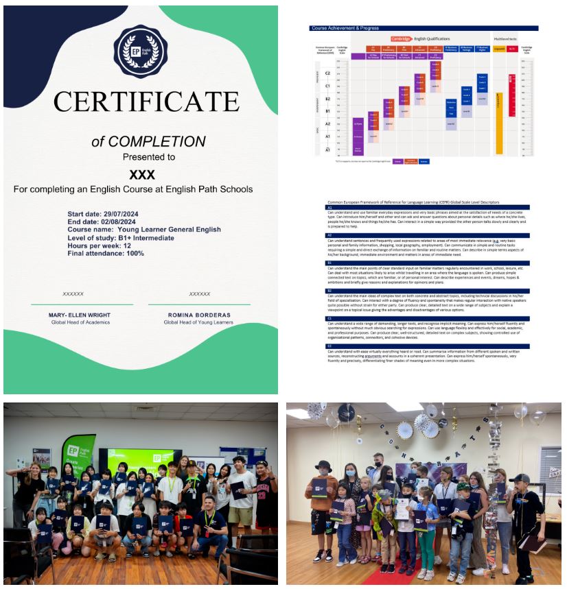 畢業生將獲頒英文能力證明證書,內容載明學習時數、課程類型以及語言能力等級。